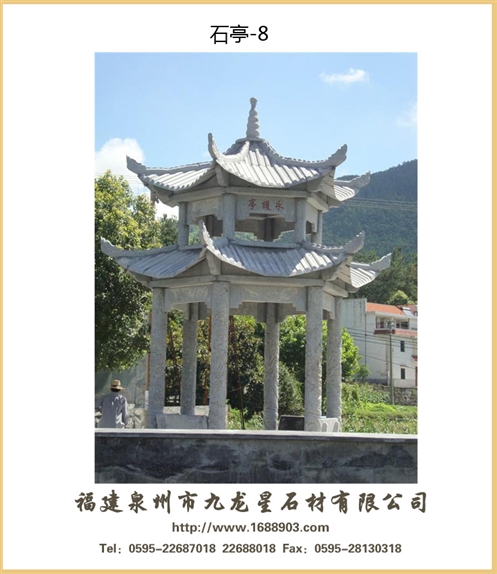 惠安石雕亭子的空間布局可以是三維的立體形態(tài),也可以兼?zhèn)淠撤N平面形態(tài);既可以依附于某種載體又可相對獨馬上存在.一樣平常地說來為得當特定視點的撫玩必要或裝飾必要石雕亭相對圓雕的突出特征是經(jīng)形體壓縮處理懲罰后的二維或平面特性.