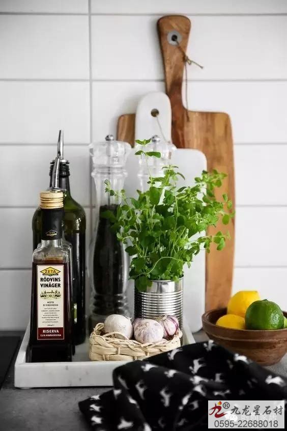↑大理石紋的托盤可以有一個(gè)。整齊的擺放上必備調(diào)料瓶,兼具收納功能哦。