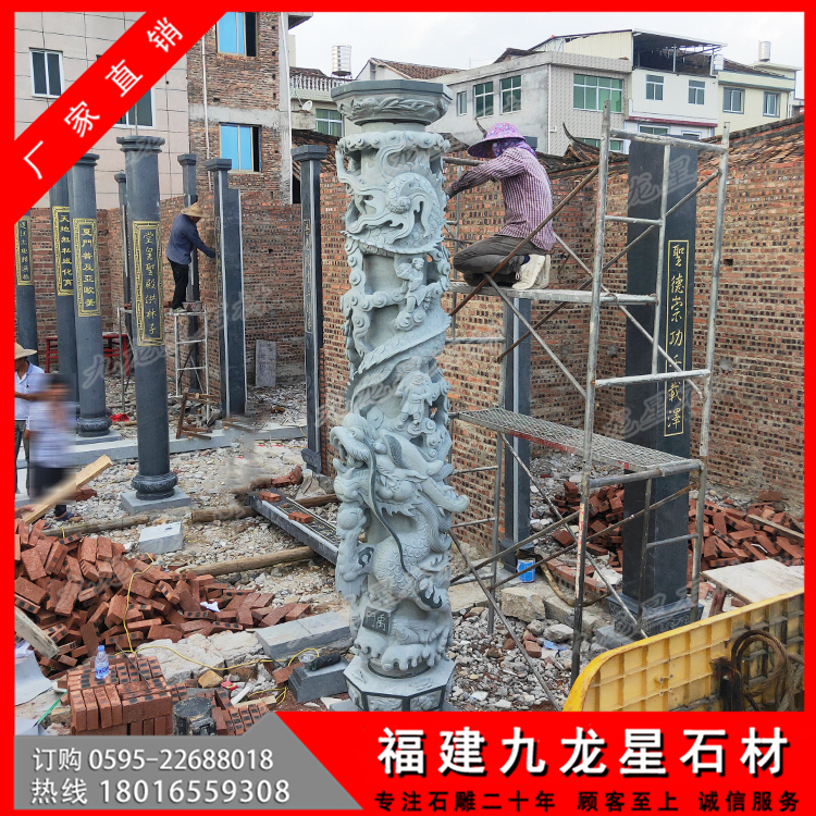 莆田普玉書院芝麻黑石材圓柱 青石雕龍柱