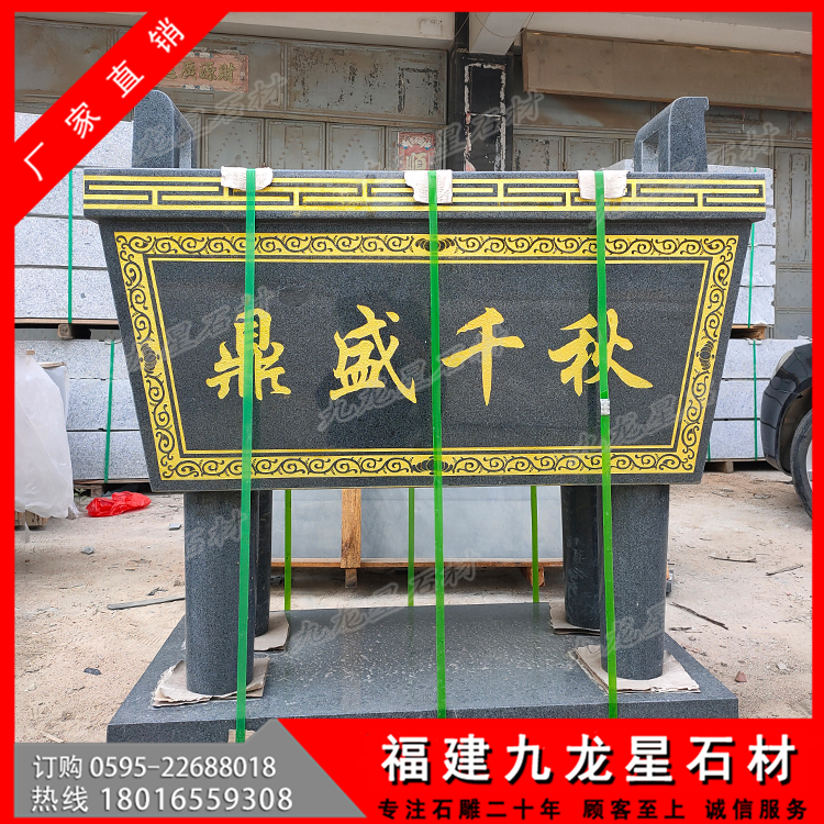 石雕香爐的制作石材通常是優(yōu)質(zhì)顏色偏深的花崗巖石料和青石石料,青石本身顏色呈現(xiàn)青色,較為古樸,青石石雕香爐突顯了整個(gè)香爐的莊重氛圍,為佛教圣地增添了幾分威嚴(yán)。石雕香爐的外形分為圓口、方形口、長方形口,圓口香爐一般是三足兩耳,方形香爐一般是四足兩耳,長方形香爐一般也是四足兩耳,還有少許兩層石雕香爐。