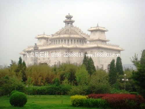 漢白玉文化藝術(shù)宮:全部為漢白玉石材建成,高29.61米,分三層,共用漢白玉700多立方米。是中華石雕藝術(shù)園核心建筑。
