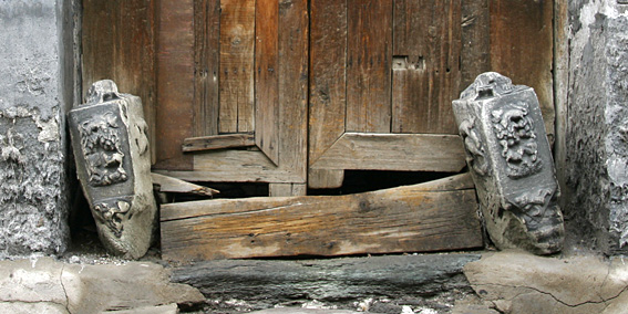 方形箱式門墩是過去文官府邸的標(biāo)志。這種門墩是讀書人的偏愛,因?yàn)樗笳髦x書人放書的箱子。門墩上也經(jīng)常雕有小獅子和氣林。