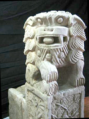 漢白玉獅子門墩是最高級的一種,它象征著權(quán)勢與地位,它顯得威嚴(yán)、神秘,好像在提醒世人,這是高貴府地,凡人不得隨便進(jìn)出。這種獅子式門墩的使用在過去有嚴(yán)格的規(guī)定。只有王府、貝勒府和皇親國戚的府地才能使用這種門墩,旁人一概不得使用。通常是雄獅居左,右爪下踩著繡球,被稱為“獅子滾繡球”;雌獅居右,左爪下是一只幼獅,叫做“少師少帥”,意思是子嗣昌盛,世代高官。
