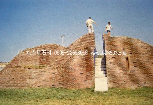 如果說奧克.德弗里斯在鹿特丹的那件作品像一支漫不經(jīng)心的童謠,綿延幾百米,不斷地帶給路人驚喜的話,亞歷山大.阿爾吉拉在馬德里郊外的那件作品似乎更為離奇。第一次見到它的人無不以為是紅磚外墻的公廁,用臺階分成男左女右兩部分。走近才發(fā)現(xiàn)是一座與周圍草地連在一起的雕塑作品,當(dāng)?shù)氐哪嗤帘粔痉e起來夯實成鋪滿草皮的波狀斜坡。從另一個角度看,仿佛原來就生長在那里奇妙的土堆。大人完全可以放任小孩子們在那里騎自行車沖“浪”,或玩其它游戲。