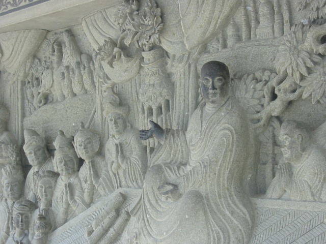 這一組禮佛廣場上閃長花崗巖雕刻,手法細膩表現(xiàn)宗教作品栩栩如生,雖然為現(xiàn)代藝術(shù),但無論從設(shè)計到工藝均展現(xiàn)了很高的水準。