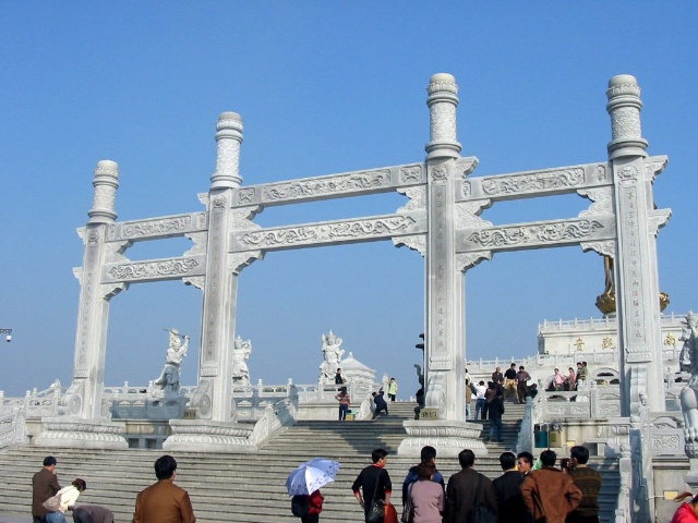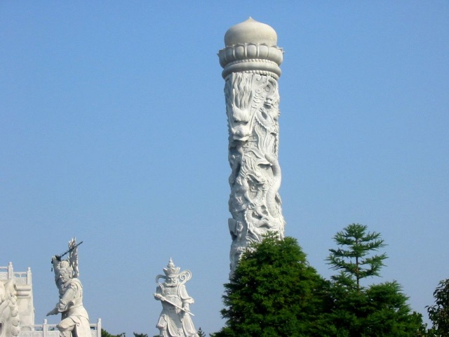 禮佛廣場上四大天王塑成了中國古代的武將形象,這是古印度佛教傳入中國后,佛教文化和中華文化相圓融的結(jié)果。 “這四大天王塑像的原形,他們的出身并不是很高貴,而是屬于那種“放下屠刀,立地成佛”的人物。四大天王原形的由來,源于古典小說“封神演義”中“魔家四將”。在周武王率兵起義,反對暴虐的無道君主——商紂王的正義戰(zhàn)爭中,這魔家四兄弟曾經(jīng)率兵于佳夢關(guān)一線阻擋周武王東進的軍隊。經(jīng)過數(shù)番爭斗,結(jié)果是被周武王的軍隊盡數(shù)殲滅,魔里海、魔里青、魔里壽、魔里紅這四兄弟也亡命于周軍之手。戰(zhàn)爭結(jié)束后,這四個助桀為虐的“魔頭”,經(jīng)姜子牙開封神榜時,就被任命為“四大天王”。