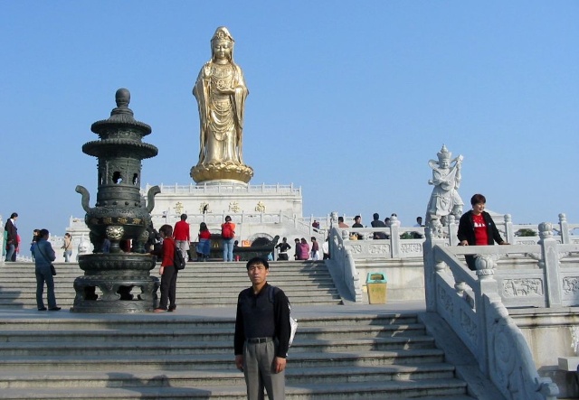 來禮佛廣場的路上我也買了幾柱高香,在上面的臺階左側(cè)為觀音菩薩奉上,凡是來普陀山的香客、游人無不對觀音菩薩畢恭畢敬。