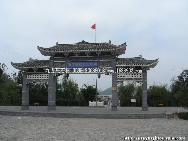 其實,在我看來,而現(xiàn)在新建的牌坊,構(gòu)建意圖已經(jīng)遠遠離開了被打上封建主義的那些色彩烙印。在用意上已經(jīng)擴展了它的內(nèi)涵,使其外延更為豐富和更具觀賞性。如地名、旅游點、廟宇、山門等以牌坊作為門頭等標志性建筑物,用來標明地名,宣傳文化的建筑物。那些刻寫在牌坊上面的楹聯(lián)文字,雖片言只語,卻道出了一些人生哲理與敘事抒情趣事趣聞,可謂深淺皆成趣,雅俗均共賞。
