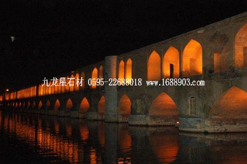 赫久古橋是伊朗最著名的橋梁之一,阿拔斯二世在1650年一座更古老的橋梁基礎(chǔ)上建造的,它共有23個(gè)拱形結(jié)構(gòu),總長度344英尺,45英尺寬。