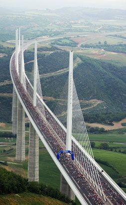 如果擔(dān)心高度過高,你可能不會(huì)選擇穿越法國南部的米約大橋,這座大橋跨越塔恩河谷至米約地區(qū),是當(dāng)今世界上最高的車載交通大橋,其最高點(diǎn)距離地面1125英尺。