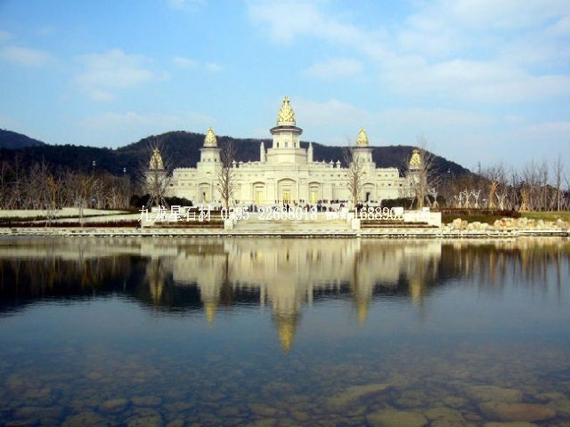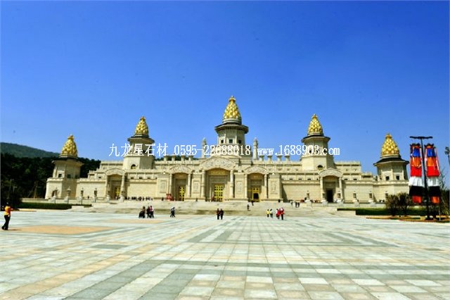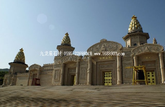 建筑正面采用漢白玉,五座華塔頂部采用黃金打造