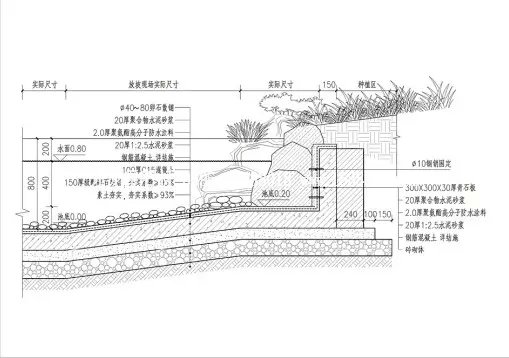 2.對于小型人工湖和造價(jià)許可時(shí)可以采用鋼筋混凝土硬質(zhì)湖底和駁岸。湖底具體做法可查閱文科相關(guān)項(xiàng)目設(shè)計(jì)圖紙。