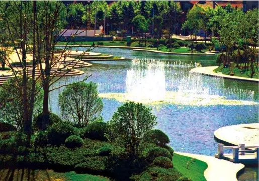 4.人工湖設(shè)計(jì)需要充分考慮水生植物及岸坡植物的合理配置與周邊的自然環(huán)境有機(jī)結(jié)合。對于要求較高的項(xiàng)目,還要配置燈帶及水底燈照明,以增強(qiáng)夜間景觀效果。