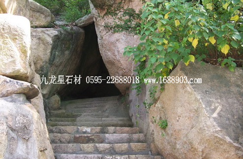 北天門,位于“海天佛國”石上方,王柱巨石旁,原由幾塊大石疊成,后因年久失修,門石倒塌已廢,幾塊門石仍在,但現(xiàn)在普陀山年輕人已不知此門了。北天門周邊古樹名木參天,門下方有條1080級石階的香云路。據(jù)說,此路原來是一條巖石縱橫的天然山徑,途中景色雖好,但道險難登,清光緒三十年(公元1904年)慧濟(jì)寺住持文正、慶祥募資砌石筑成。沿路繁枝交錯,飛禽鳴啼。西側(cè)的青玉澗自白華山頂?shù)缴侥_,一帶漂流,淙淙汩汩之聲,時斷時續(xù),曾有詩贊此景:“一澗冷冷沏沏清,鏡人心影得嘉名;誰言觀海難為水,雨后飛泉十丈贏?!毕阍坡芬粋?cè)還塊刻有“海天佛國”四字的大石塊,筆力剛勁,醒目壯觀,為抗倭名將候繼高書。相傳,當(dāng)年候繼高駐山抗倭,佯裝上佛頂山禮佛,鳴鑼開道,引寇入山,一舉全殲之?!昂L旆饑边@四字點出了普陀山山海之勝的特色,后便成了普陀山的代稱。“海天佛國”石上又疊有一石,狀似倚鐘,直插青冥,云霧纏繞,險而且玄。石上鐫有“云扶石”三字,但不知題刻者姓名和年代。據(jù)說,1962年大文學(xué)家郭沫若游普陀時,在佛頂山上曾以“佛頂山頂佛”作上聯(lián)向同行者求對,要求從普陀山尋覓一名與之對偶的下聯(lián),而且都要倒讀順讀皆成句。當(dāng)時眾人苦思冥想,無以對答。后來后山有一山民郭氏以“云扶石云扶”句對上,聞?wù)邿o不傾到,一時傳為佳話。