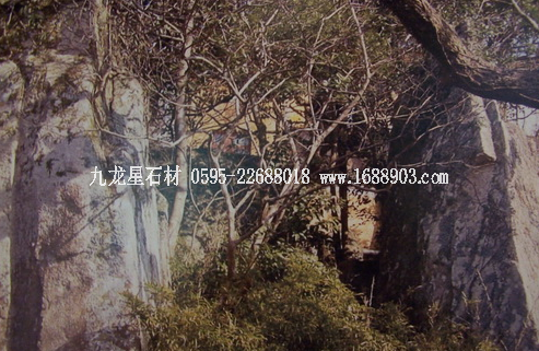 西天門,位于心字石景點上方(見圖),該處有塊蛤蟆石與山邊的一塊巨石相聯(lián),兩石相峙似門,上又覆巨石,題鐫“西天法界”四字,門右巨石上題刻“證菩提道”、“寰海鏡清”。西天門外有一塊似蛇首的大石塊,形象逼真,惟妙惟肖,流傳著發(fā)人警醒的觀音斗惡蟒的故事。進(jìn)門右上峰頂,一石壁立,酷似一老僧佝腰負(fù)囊面西而行,稱達(dá)摩蜂。清吳祺詩云:“蕭梁臺殿草茸茸,面壁親傳少室宗。只履西歸無覓處,誰留明月照孤峰?!北旧缴湓娫?“嵩山人似壁,補(bǔ)洛壁如人,獨立孤峰上,誰逢蔥嶺身?!爆F(xiàn)因林木茂盛,達(dá)摩已掩在其中了。據(jù)傳,西天門是凡間佛教信徒去西天說法臺聽觀音說法的必進(jìn)之門。