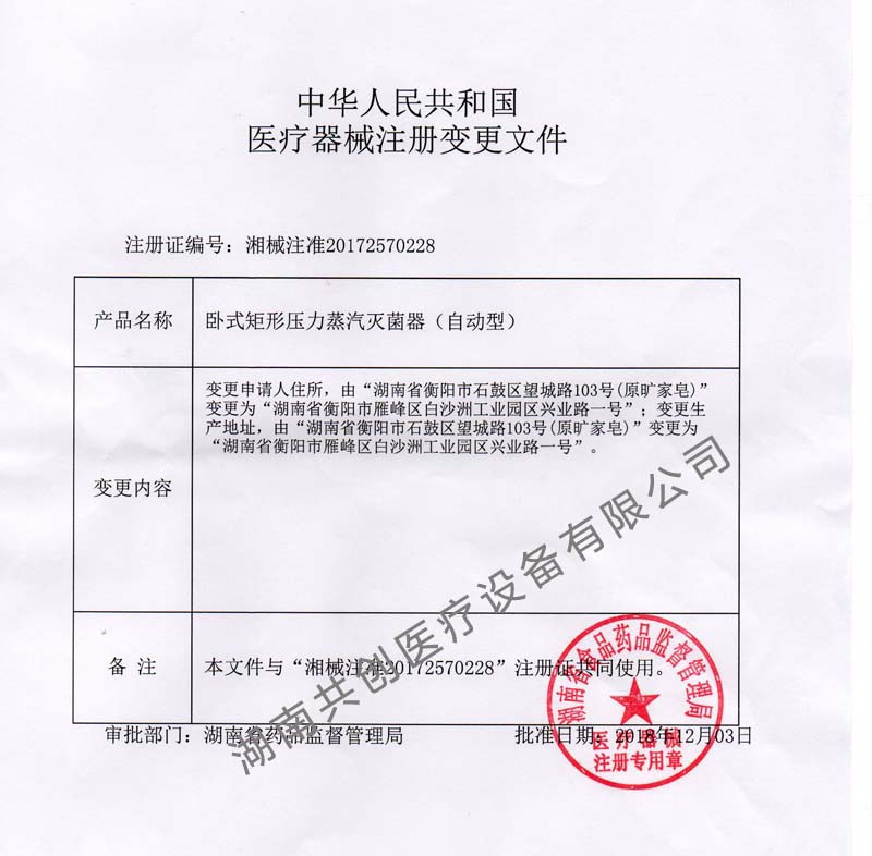 下一篇:臥式矩形壓力蒸汽滅菌器(自動型)注冊證