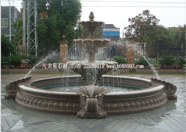 歐式三層水缽造型,四只蝸牛噴水雕塑為點(diǎn)綴。