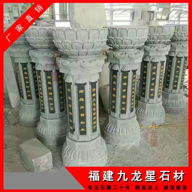出食臺有各種不同形制、材質(zhì),造型上沒有固定的法制,多以幢型居多,常見的是石材,也有木刻。高度至少一百多公分以上,常見:圓形長柱、四面柱、八角型柱等不同形狀。石柱,可分為上、中、下三部分,上部多見以蓮花造型為臺,中段為石柱,柱上??逃谐鍪撑_,或與施食儀軌相關(guān)的佛號或字句,如(南無多寶如來;南無寶勝如來;南無妙色身如來;南無廣博身如來;南無離怖畏如來;南無甘露王如來;南無阿彌陀如來)或南無阿彌陀佛等佛名圣號,或刻「法力不思議」等字樣。有些大型石柱,甚至刻有七尊佛像,或其他吉祥圖案,在出食臺柱身雕刻七寶如來圣號是希望在施食時,蒙七佛加持,令所食之眾生欲望得到滿足,從而心離貪慳,隨愿往生佛國凈土,前來參拜的善男信女,持誦七寶如來法號可拔盡永離煩惱。