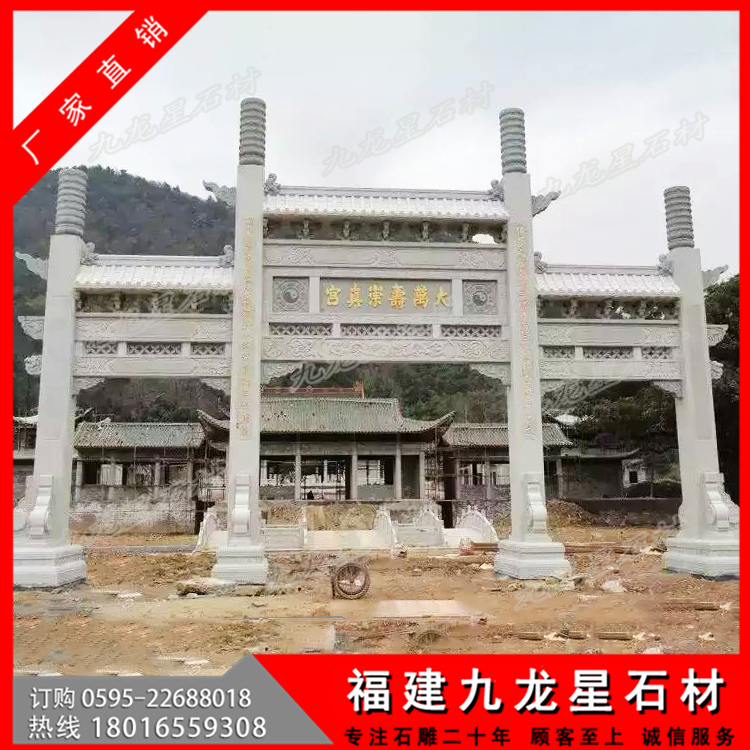 第二:牌坊大小,大型牌坊也有大小之分,筆者見(jiàn)過(guò)最大的牌坊高達(dá)6米,左右寬12米,深3米,整座牌坊完全采用立柱搭建,造型別致,精妙絕倫,這樣的大型牌坊價(jià)格是非常高的,當(dāng)時(shí)聽(tīng)聞,需要幾千萬(wàn)制作而成。但是普通的三門(mén)牌坊也可以稱之為大型牌坊,價(jià)格不過(guò)幾萬(wàn)到十幾萬(wàn)也非常多。主要是越大的作品,需要加工的工藝和使用的石料都會(huì)增加,并且后續(xù)的運(yùn)輸,安裝也會(huì)非常的繁瑣導(dǎo)致的。