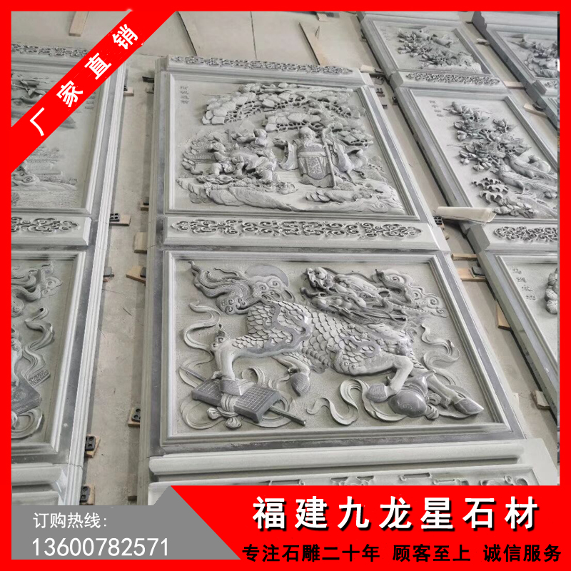 石頭浮雕壁畫、浮雕照壁上可以雕刻哪些圖案?在這種石雕墻上比較常見的會雕刻龍形圖案,龍是我們國家的神獸,現(xiàn)代而言,龍已經(jīng)不是皇家的專用,隨處都可以應(yīng)用到龍,在浮雕影壁上雕刻龍的圖騰,更加凸顯浮雕壁畫的立體感,另外像麒麟、獅子等獸類也比較常被雕刻在上面。除了動物造型,人物造型也可以被雕刻在上面,可以是神話人物或者是傳奇類的人物都可以通過雕刻的形式體現(xiàn)在浮雕壁畫、影壁上,也是一種文化的傳承。另外還有花草樹木以及文字等等,都能夠被應(yīng)用在石雕上,讓整個浮雕壁畫更加的豐富生動。